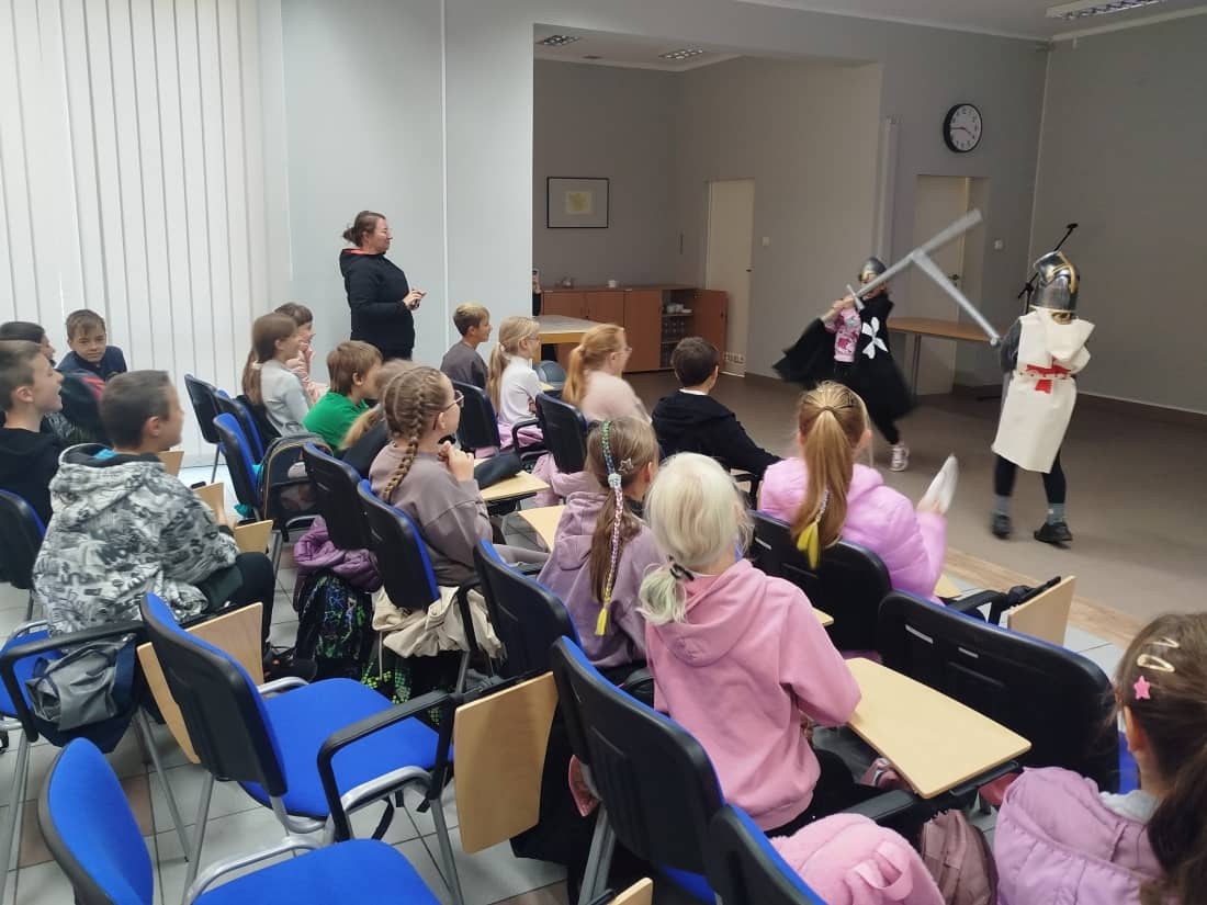 W ostatni weekend września gościliśmy dwie klasy ze Szkoły Podstawowej nr 3 w Słubicach. Uczniowie, którzy postanowili przeżyć przygodę w średniowiecznym świecie rycerzy, wzięli dział w lekcji muzealnej poświęconej zakonom rycerskim. Dzieci mogły wcielić się w prawdziwych rycerzy – założyć hełm, unieść tarczę i chwycić miecz. Wystarczyło zamknąć oczy, by usłyszeć tętent końskich kopyt na zamkowym dziedzińcu.