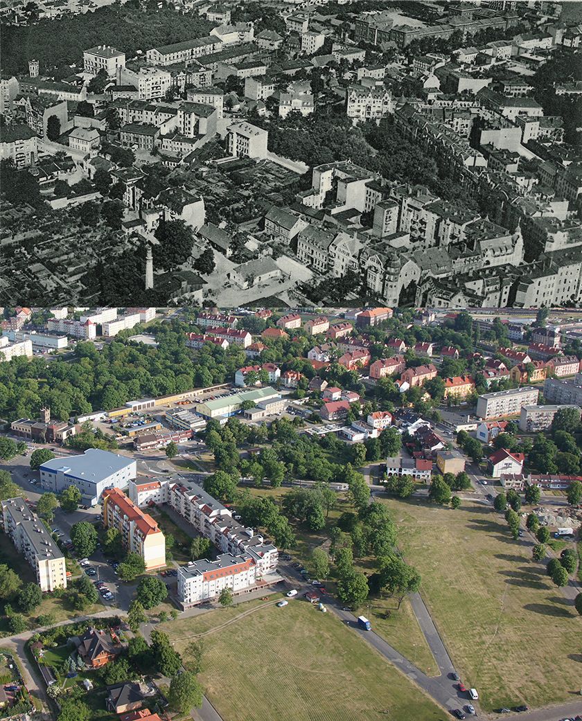 Przez blisko pół wieku pozostałości kostrzyńskiej starówki zamieniały się stopniowo w coraz mniej czytelne hałdy gruzu, z czasem pokrywane przez gęstniejącą roślinność. W ostatnich latach minionego stulecia ulice i place, jak również część kwartałów byłej zabudowy oczyszczono, dzięki czemu plan zniszczonej dzielnicy jest znowu czytelny. Spacer przez ten nietypowy park, pośród resztek zabudowy, której poznaczone śladami pocisków i odłamków mury wystają już nie więcej niż 1,5 m nad grunt, to przeżycie szczególne. W niektórych miejscach wciąż jeszcze można się zorientować, czym były budowle, z których ostały się najwyżej piwnice, niekiedy tylko resztki obwodowych murów i zasypane pokrytym mchem gruzem doły - tak przynajmniej w przypadku byłych zamku i kościoła farnego. By jednak zobaczyć to, czego już nie ma, zajść wypada do bastionu Filip, w którego kazamatach opowiada się dzieje Kostrzyna. Tymczasem życie toczy się gdzie indziej - za Wartą, gdzie w II połowie XIX w. rozrosła się najludniejsza dzielnica Kostrzyna - Nowe Miasto. Choć i ona w 1945 r. w ponad 90% uległa zniszczeniu, na jej miejscu powstało polskie miasto, które wciąż się zmienia i rośnie.